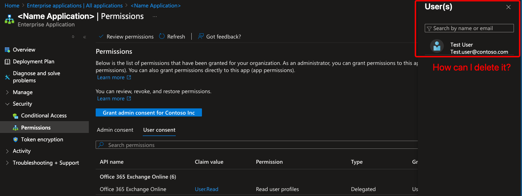 As shown in the screenshot below, if you go to Enterprise applications → <Your_application> → Permissions [Security], there is no obvious way to revoke or modify these permissions!!