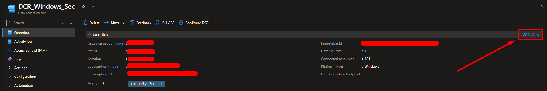Define Name for the DCR and Resource Group where is stored (default will be Sentinel)