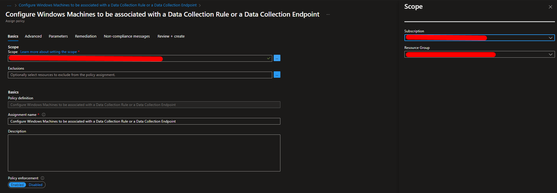 - Configure the Policy: Set up the policy parameters to deploy the Azure Monitor Agent. You can specify the conditions under which the agent should be installed and apply it to the appropriate scope, such as specific resource groups or subscriptions.
